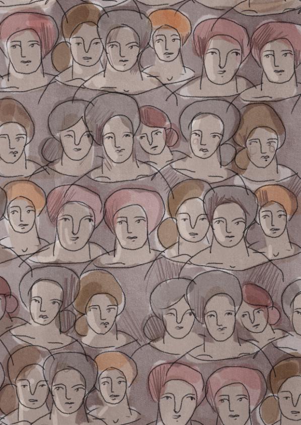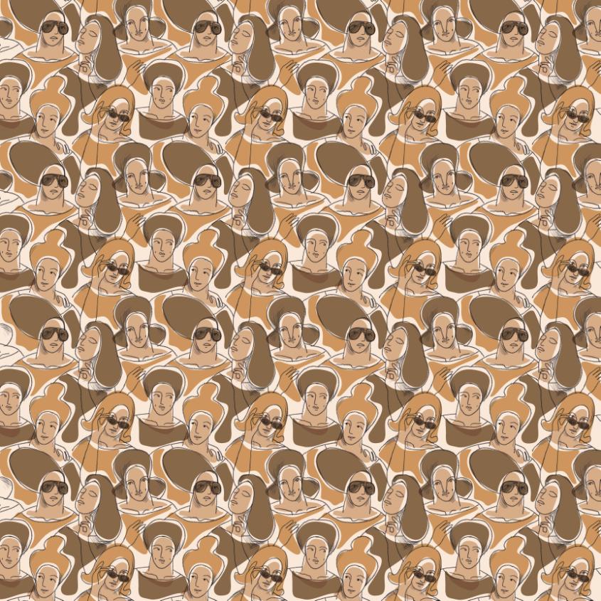 Blend is designed in collaboration with Tinna Ahlander of Tinna Design, who has been drawing faces since childhood. Working primarily in Adobe Illustrator, she explores repetition, identity, and perception - often creating patterns that reveal themselves gradually. With Blend, the intention was to capture an aha moment: at first, the pattern appears abstract, before the human faces and silhouettes slowly emerge.