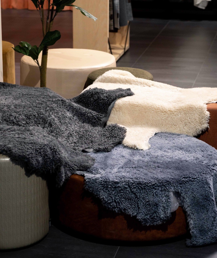 Lammfell absorbiert auf natürliche Weise Geräusche und ist daher eine gute Wahl für akustisch sensible Umgebungen wie Büros, Hotels und Lounges.