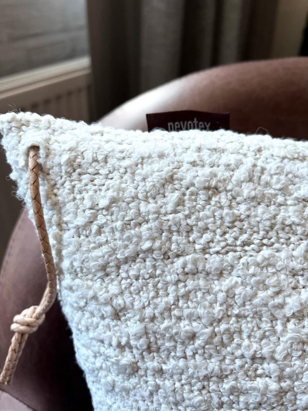 Marlon is a durable bouclé fabric with a lot of structure, which in combination with warm color tones gives a retro feeling. Boucle is woven in twisted yarn, where small loops are formed and give the yarn its knotty texture. The main characteristic of a bouclé fabric is precisely the rough surface structure. The fabric is suitable for furniture and decoration, is produced from recycled material with minimal water consumption.